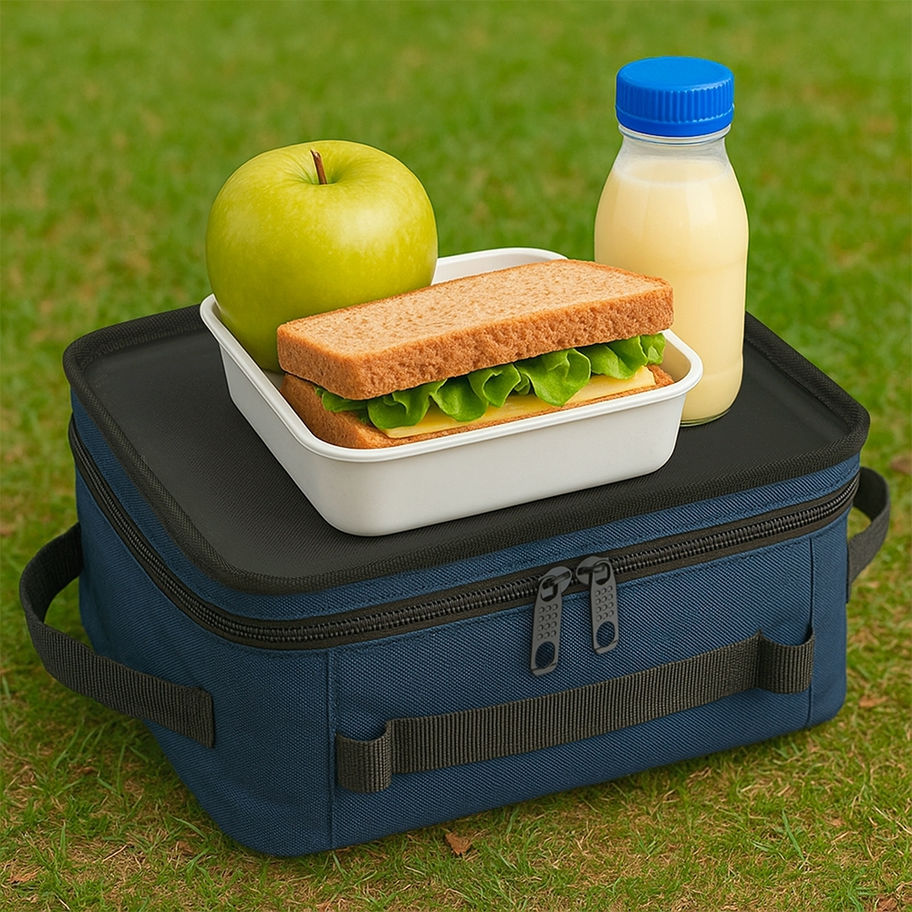Descrição: Bolsa térmica compacta feita em poliéster resistente à água com capacidade máxima de 9 litros. Apresenta revestimento térmico interno em PEVA atóxico, o que possibilita a conservação da temperatura de alimentos e bebidas por mais tempo. Conta ainda com alças laterais em nylon e tampa de base firme que pode ser usada como bandeja para refeições.